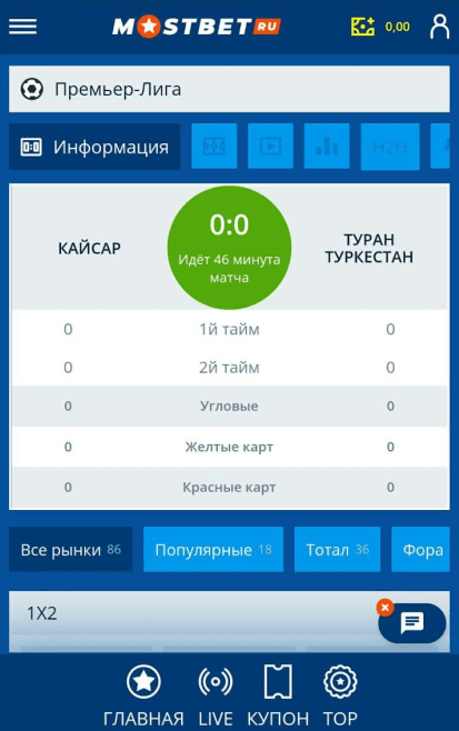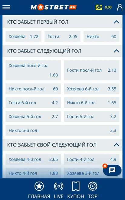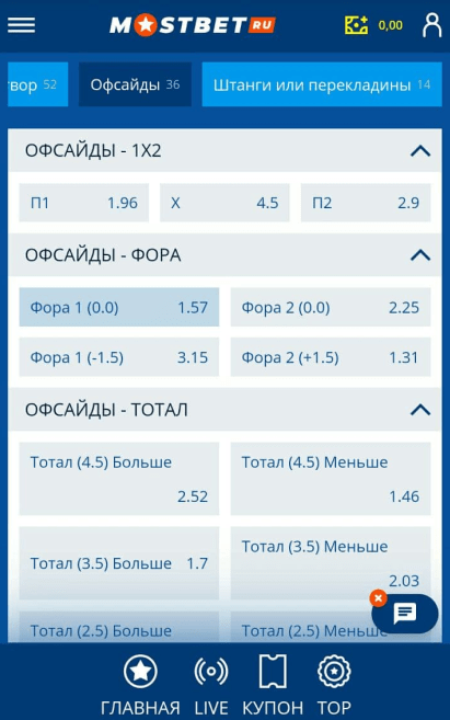 Линия в лайве ограничена. Понятно, что востребованные турниры доступны, но средние, не говоря уже о смолмаркетах, часто отсутствуют. К примеру, когда у лучших БК по лайв линии может быть 30 футбольных событий, у Мостбет – только 10. К отечественным соревнованиям, это относится к меньшей степени.
