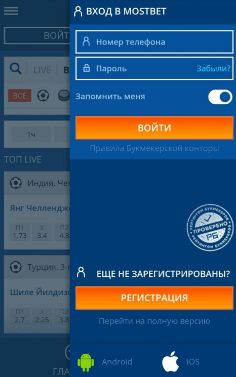 Как выполнить вход в мобильной версии Мостбет?